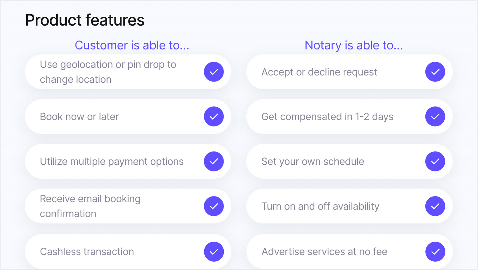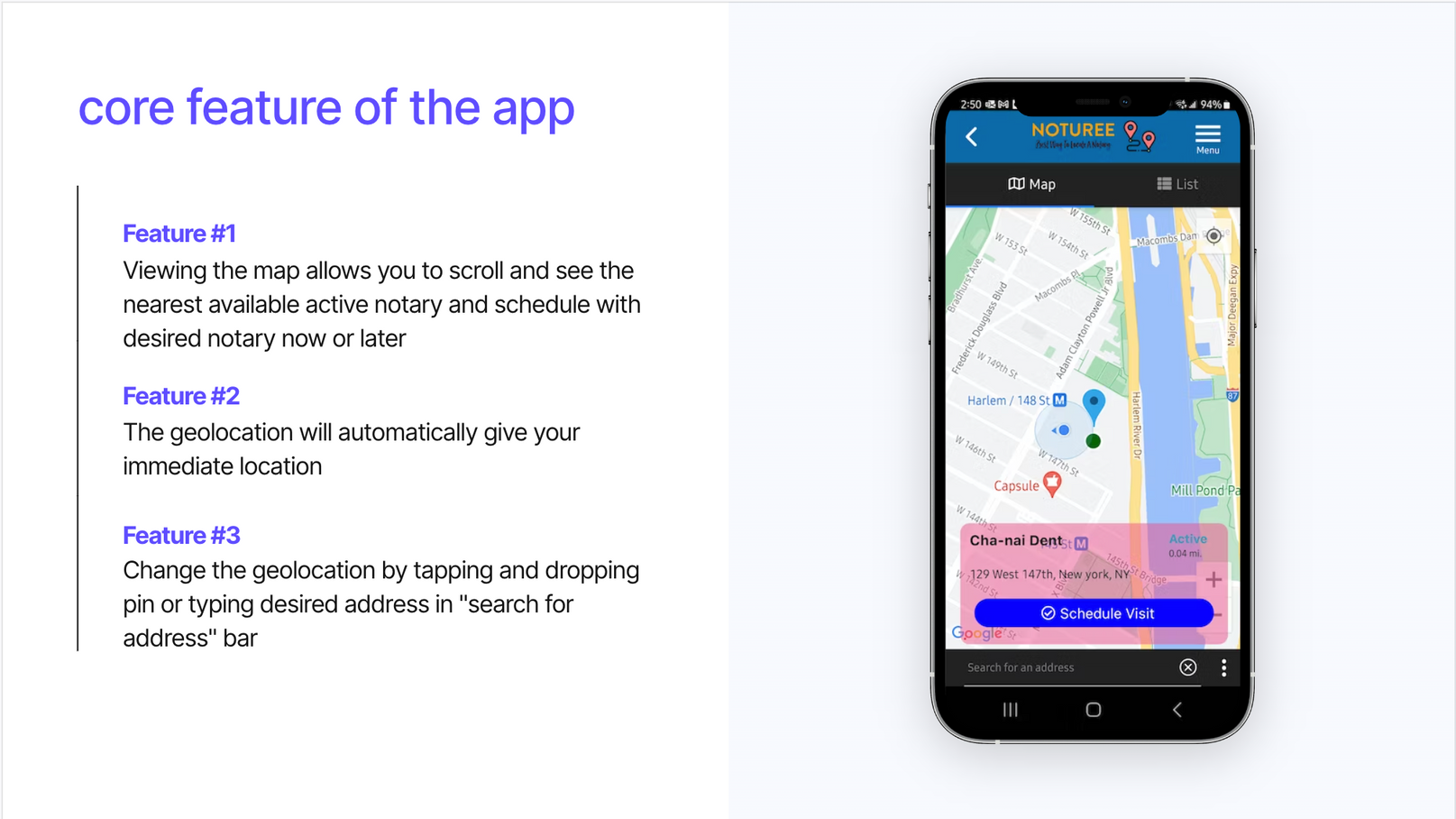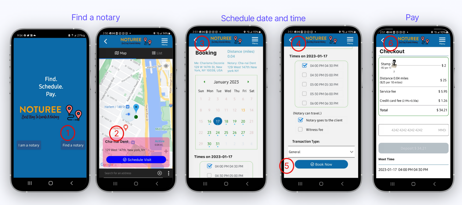 NOTUREE is a mobile-based solution that allows users to locate notary publics which allows a convenient and fast way to book notary services across the United States. The app intends to eliminate the need to drive around town looking for a notary, connecting notaries with customers in America. Its vision is to provide a service that will enable users to easily connect with notaries, streamline the entire process, reduce cost and increase convenience, as well as enable more people to benefit from this service.